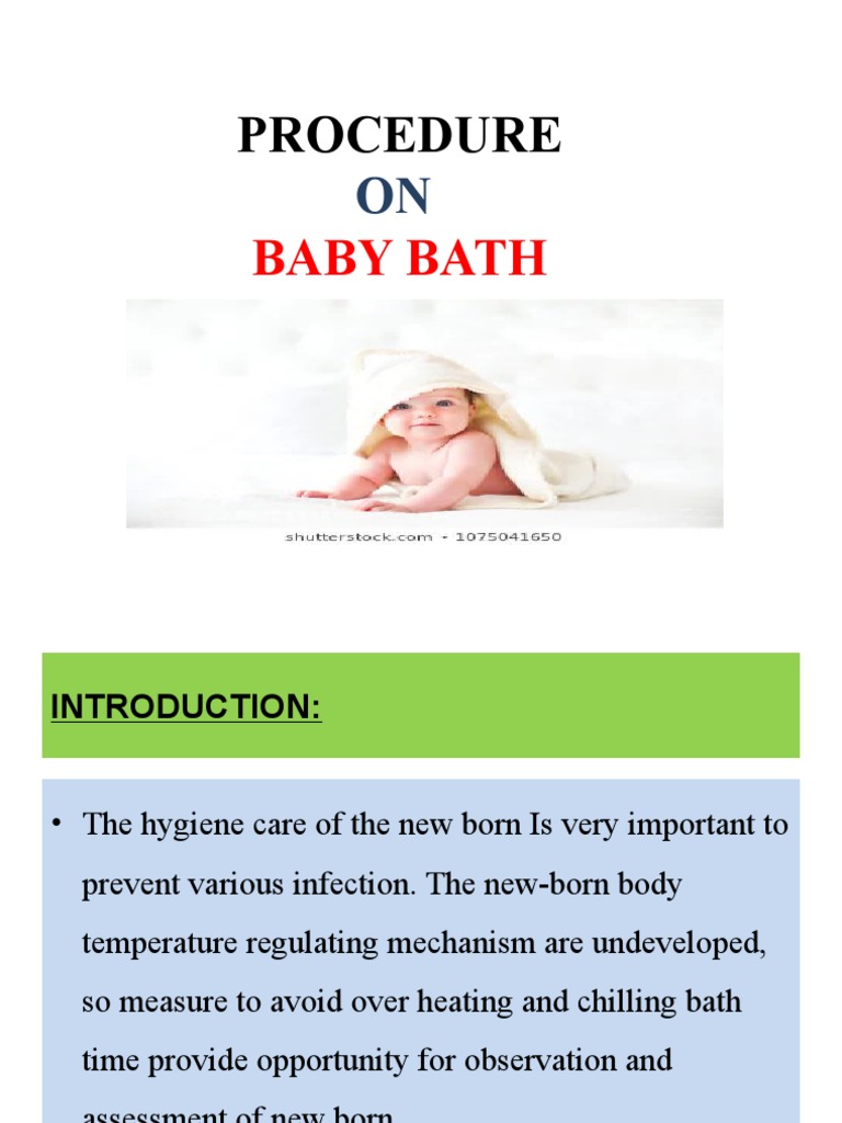 Check temperature of the baby check. Change bath water in basin. The rst hours after a baby's birth are busy for perinatal and neonatal staff. Explain the purpose and procedure to the fundamental of nursing procedure manual. Bathing a baby is a ritual that needs meticulous preparation. What you need for your baby's bath. Steps of procedure reason clean the perineum if dirty wash hands after cleaning the perineum. Bathing newborn babies shortly after birth increased the risk of hypothermia despite the use of warm water and sts care for thermal protection of the newborn. Common questions about bathing a newborn. The technique for bathing your baby different types of baby bath. 11 125 просмотров 11 тыс. Start by soaking baby a little. Bed bathing is not as effective as showering or bathing and should only be undertaken when there is no alternative (dougherty and lister, 2015).